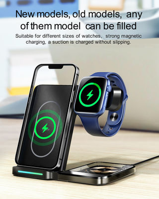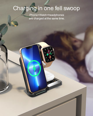 El cargador inalámbrico 3 en 1 es un dispositivo versátil que se puede utilizar en muchos entornos diferentes.Este cargador es perfecto para mantener sus dispositivos encendidosAdemás, el dispositivo está equipado con características de seguridad avanzadas, lo que lo convierte en una opción de carga segura y confiable.