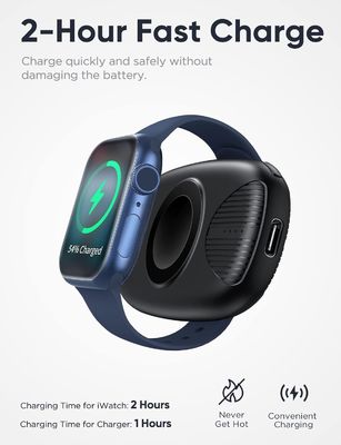 La salida del Power Bank del Smartwatch es de 5V/1A, lo que significa que puede cargar su iWatch rápida y eficientemente.Puede estar seguro de que su iWatch se mantendrá encendido y listo para ir.